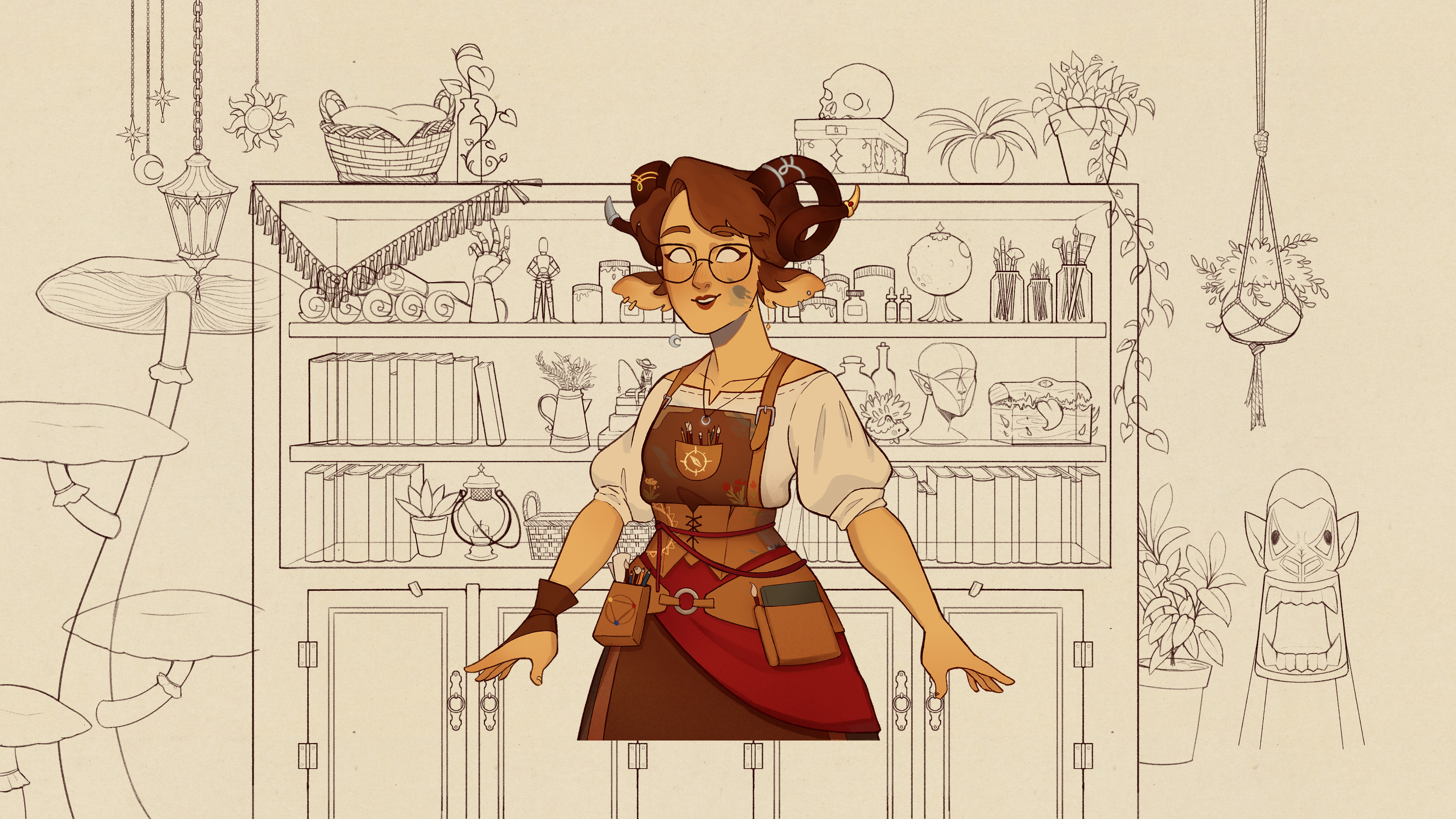 One of the things that I wanted to do is an… orthogonal (?) view of the background. Those cute little background cutouts, so I started sketching! And it was hard as hell. I don’t have a lot of experience drawing backgrounds like that, so drawing the general forms wasn’t that hard but keeping the proportions reasonable was a nightmare!
